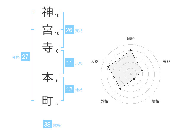 神宮寺 本町さんの総格は38画の4点!