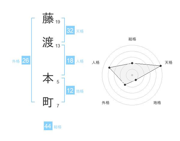 藤渡 本町さんを姓名の画数から五運を鑑定