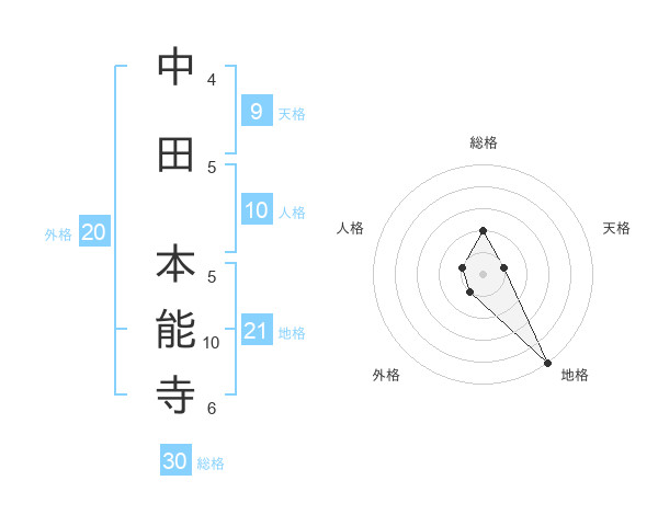 中田 本能寺さんを姓名の画数から五運を鑑定