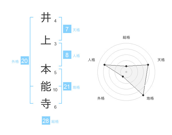 井上 本能寺さんの総格は28画の1点!