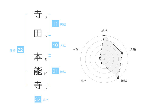 寺田 本能寺さんの総格は32画の5点!