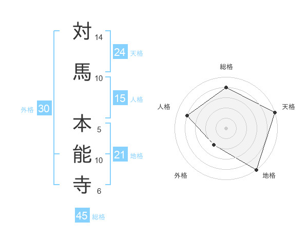 対馬 本能寺さんの地格は21画の5点!