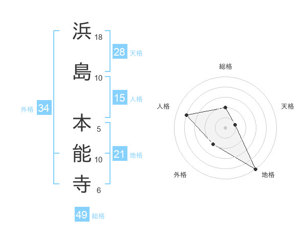 浜島 本能寺さんの地格は21画の5点!