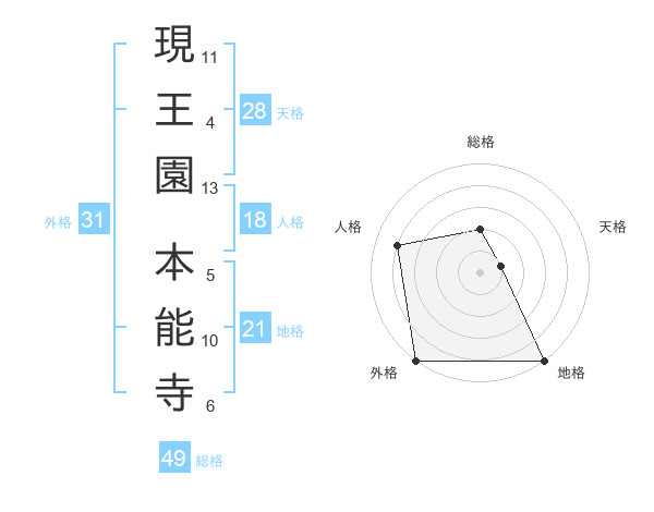 現王園 本能寺さんを姓名の画数から五運を鑑定