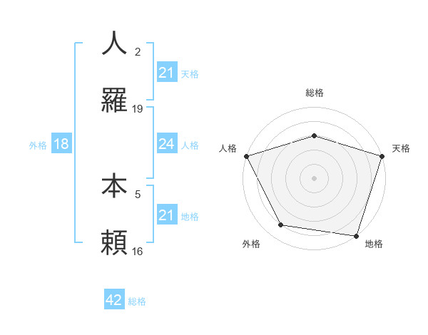 人羅 本頼さんの天格は21画の5点!