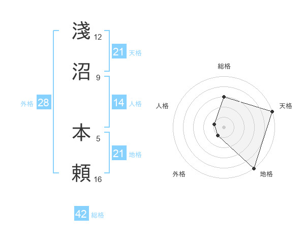 淺沼 本頼さんの天格は21画の5点!