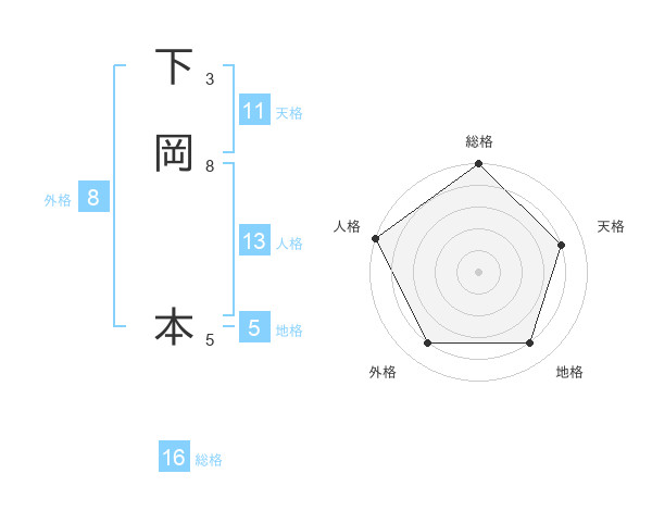 下岡 本さんの人格は13画の5点!