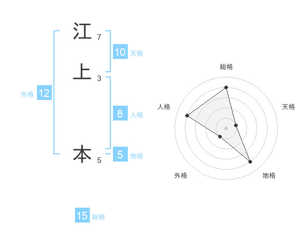 江上 本さんの総格は15画の4点!