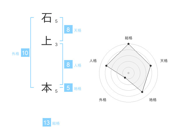 石上 本さんの総格は13画の5点!