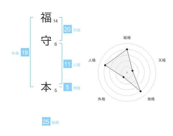 福守 本さんの総格は25画の4点!
