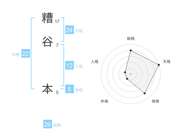 糟谷 本さんの総格は29画の4点!