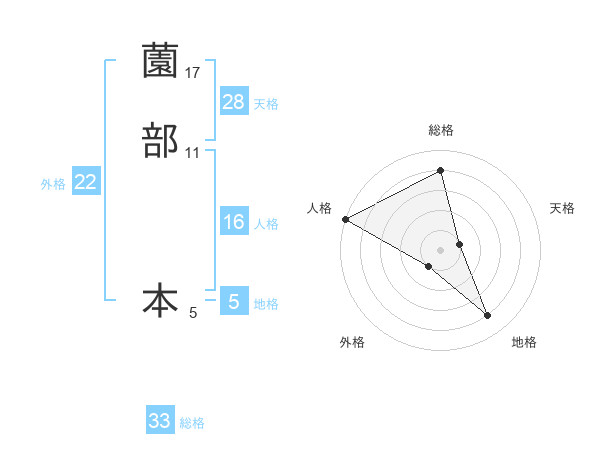 薗部 本さんを姓名の画数から五運を鑑定