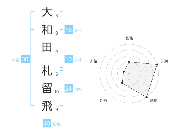 大和田 札留飛さんの天格は16画の5点!