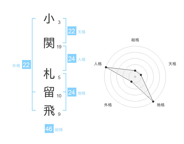 小関 札留飛さんを姓名の画数から五運を鑑定