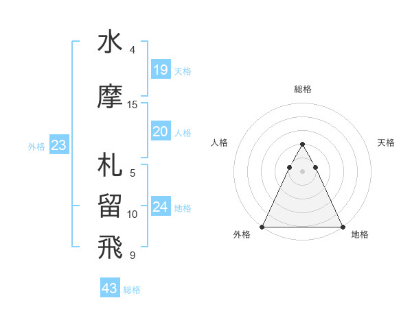 水摩 札留飛さんを姓名の画数から五運を鑑定