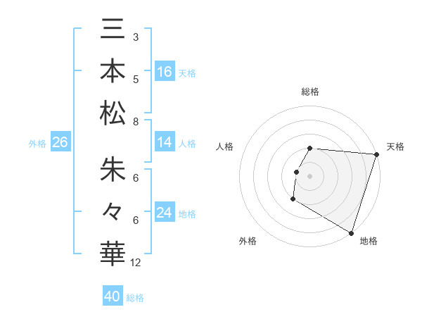 三本松 朱々華さんを姓名の画数から五運を鑑定