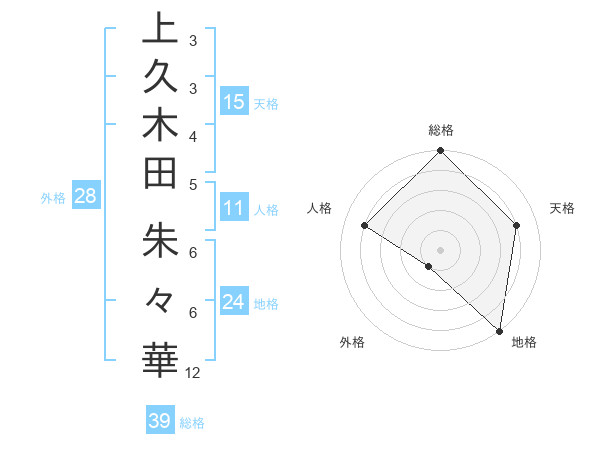 上久木田 朱々華さんの総格は39画の5点!