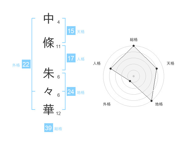 中條 朱々華さんの天格は15画の4点!