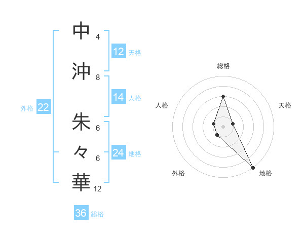 中沖 朱々華さんの地格は24画の5点!
