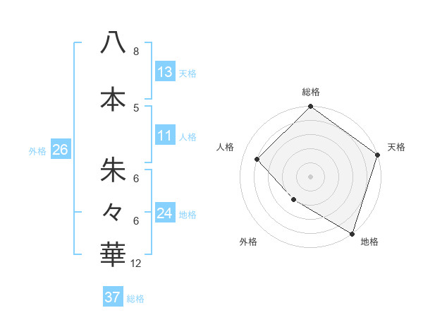 八本 朱々華さんの総格は37画の5点!