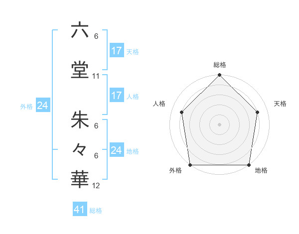 六堂 朱々華さんの天格は17画の4点!