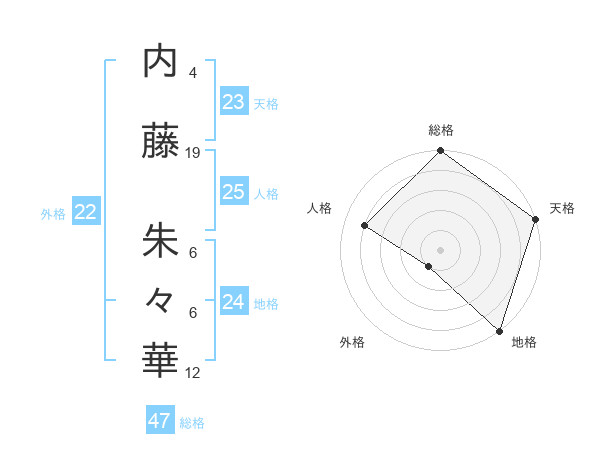 内藤 朱々華さんを姓名の画数から五運を鑑定