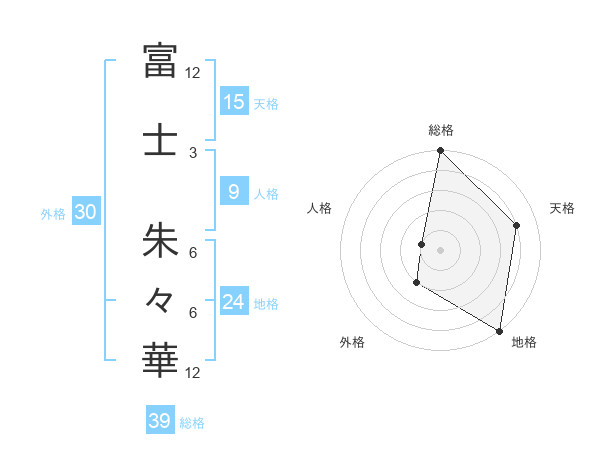 富士 朱々華さんを姓名の画数から五運を鑑定