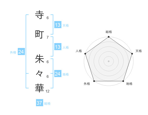 寺町 朱々華さんの地格は24画の5点!