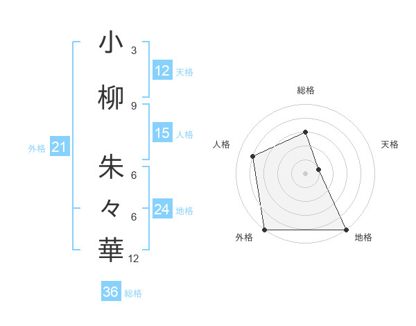 小柳 朱々華さんの天格は12画の1点!