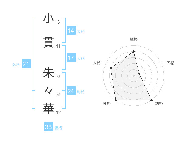 小貫 朱々華さんを姓名の画数から五運を鑑定