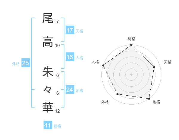 尾高 朱々華さんを姓名の画数から五運を鑑定