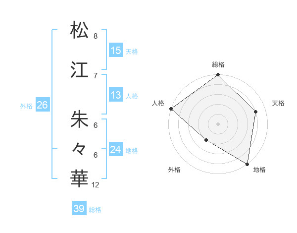 松江 朱々華さんの総格は39画の5点!