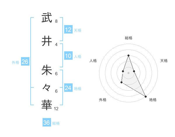武井 朱々華さんを姓名の画数から五運を鑑定