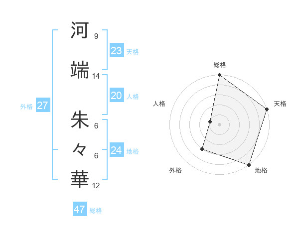河端 朱々華さんを姓名の画数から五運を鑑定