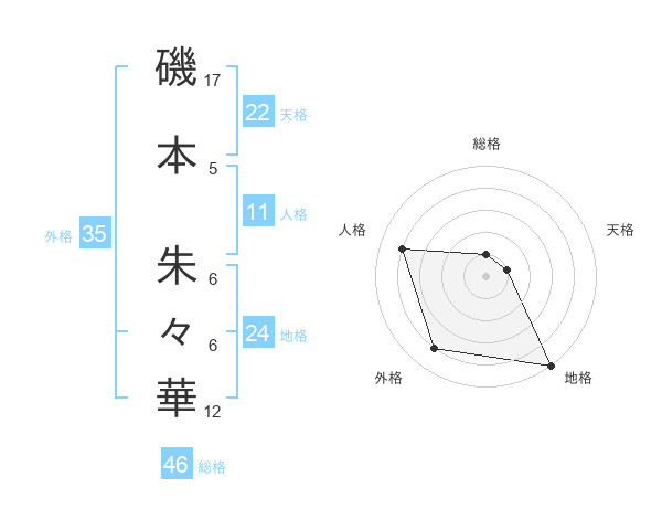 磯本 朱々華さんの地格は24画の5点!