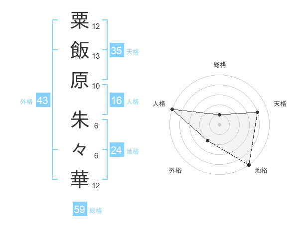 粟飯原 朱々華さんの地格は24画の5点!