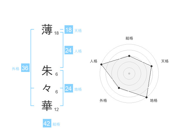 薄 朱々華さんを姓名の画数から五運を鑑定
