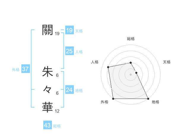 關 朱々華さんの外格は37画の5点!