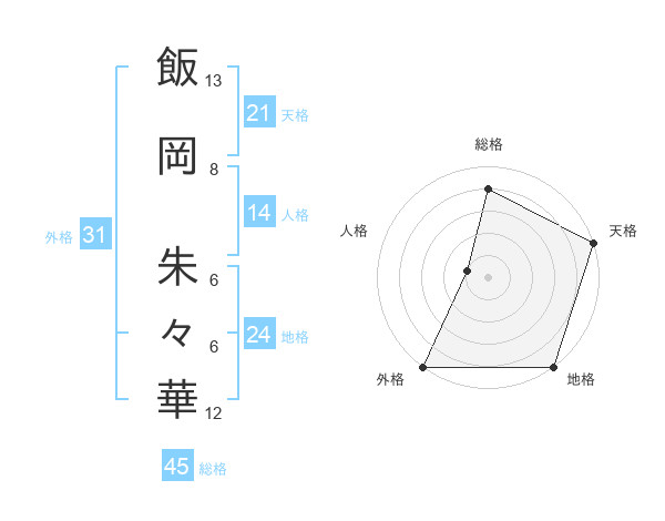 飯岡 朱々華さんを姓名の画数から五運を鑑定