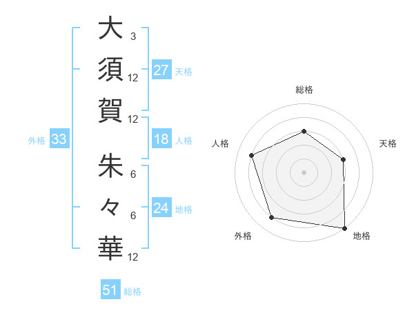 大須賀 朱々華さんを姓名の画数から五運を鑑定