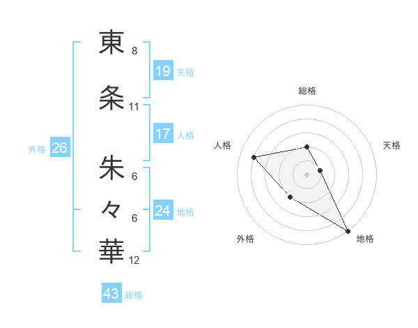東条 朱々華さんを姓名の画数から五運を鑑定