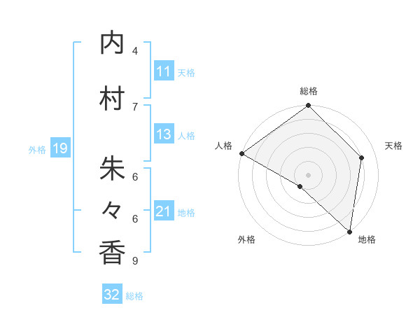 内村 朱々香さんの総格は32画の5点!