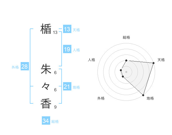 楯 朱々香さんを姓名の画数から五運を鑑定