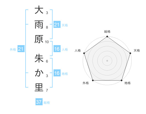 大雨原 朱か里さんの総格は37画の5点