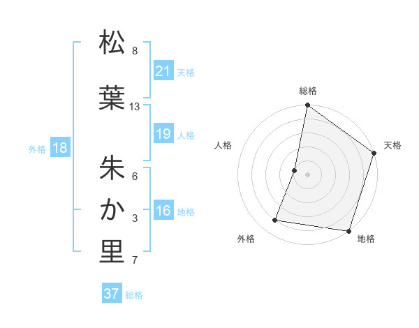 松葉 朱か里さんの総格は37画の5点!