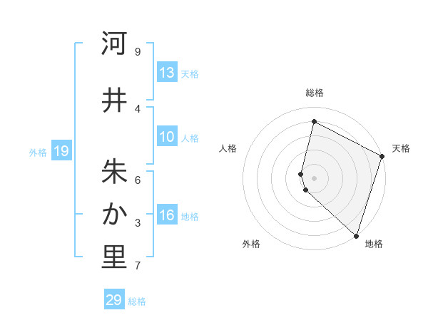 河井 朱か里さんを姓名の画数から五運を鑑定