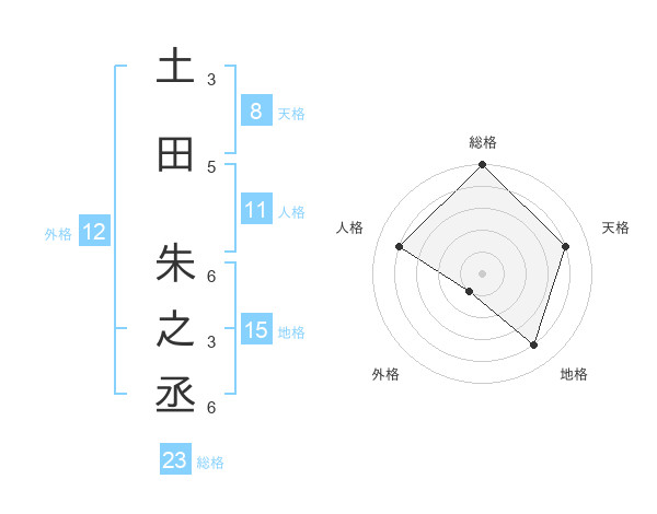 土田 朱之丞さんを姓名の画数から五運を鑑定