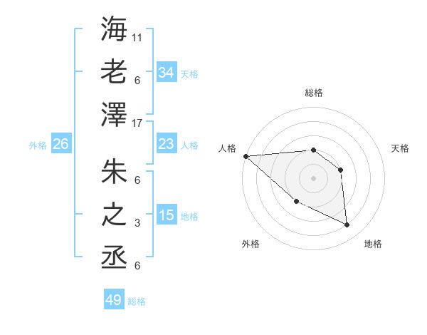 海老澤 朱之丞さんを姓名の画数から五運を鑑定
