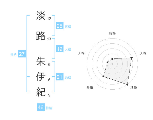 淡路 朱伊紀さんの天格は25画の4点!