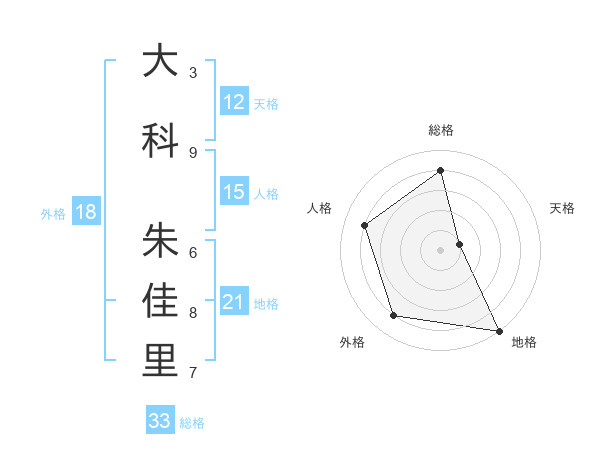 大科 朱佳里さんの天格は12画の1点!